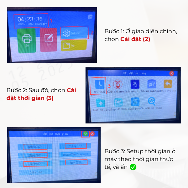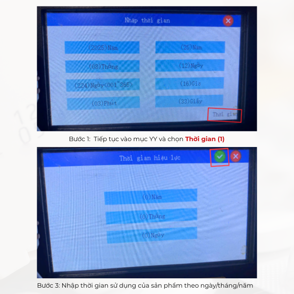 Để thiết lập được tính năng máy in hạn sử dụng tự động, trước tiên cần đảm bảo ngày tháng năm trên máy trùng khớp với lịch thực tế.